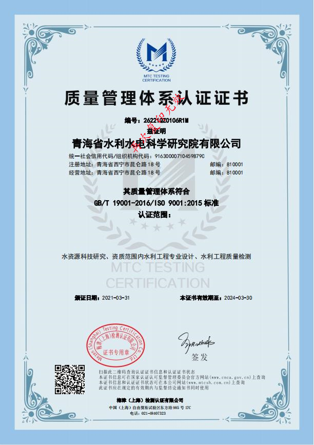 • 省水科院承擔質檢任務的門源縣浩門水庫供水工程一期、二期工程通過竣工驗收 11-04